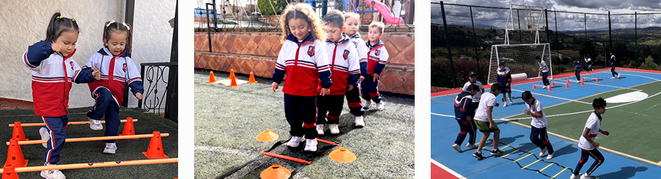 Una parte fundamental de nuestra propuesta de Educación Integral se centra en las asignaturas de Danzas, Arte y Educación Física, las cuales cobran un protagonismo especial en nuestra sede campestre. Reconocemos que en la actualidad, los niños necesitan más que nunca espacios donde puedan desarrollar sus habilidades creativas y fortalecer todas las dimensiones de su ser. En nuestro entorno campestre, estos campos deportivos se convierten en lugares idóneos para que los estudiantes exploren y potencien sus capacidades creativas, agudicen sus sentidos y aprecien de manera más profunda el mundo que les rodea en toda su diversidad.