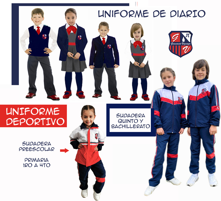 Como elemento formador que identifica a nuestros niños como miembros del Gimnasio Vizcaya, llevan para cada jornada el uniforme de diario o Deportivo; estos serán portados de manera adecuada y pulcra de acuerdo con el horario establecido para cada nivel como símbolo del respeto que los niños profesan por su colegio, y como sentido de pertenencia hacia el mismo.